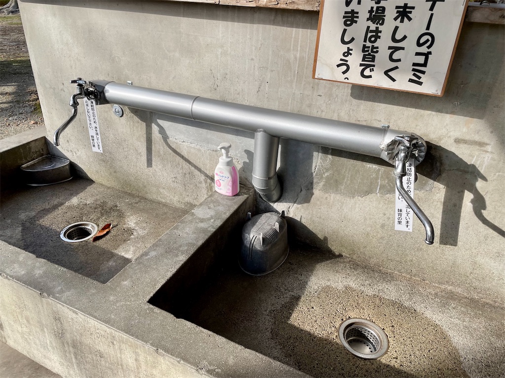 「キャンプ場の炊事場をお借りして、サッと水道水で流します」