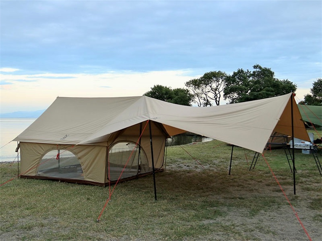「夏場は、サイドタープの下で過ごすことができるので、風通しがよくかなり涼しいです」