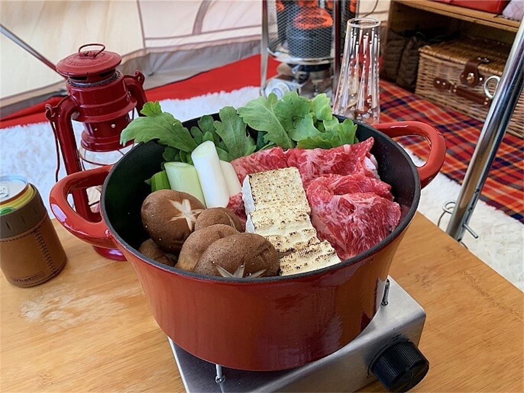 寒い時期のキャンプ飯は、バーベキューではなくすき焼きがおすすめ。
