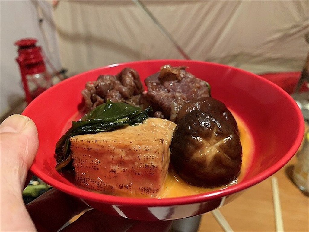 キャンプで、すき焼きをする方は少ないような気がしますが、寒い時期に良いと思います。