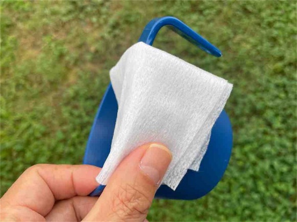 「ウェットティッシュで汚れを拭きとってから、自宅に持って帰りきれいに洗います」