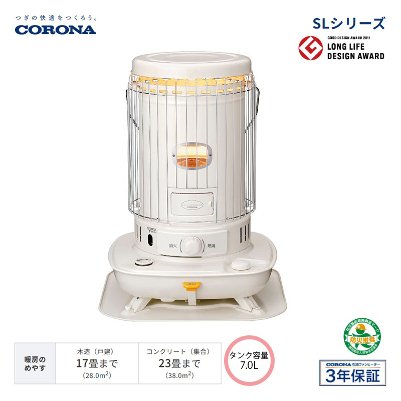 「コロナ対流型石油ストーブの暖房出力は6.59kwあり、レインボーストーブの2倍以上の暖房出力と暖かさがあります」